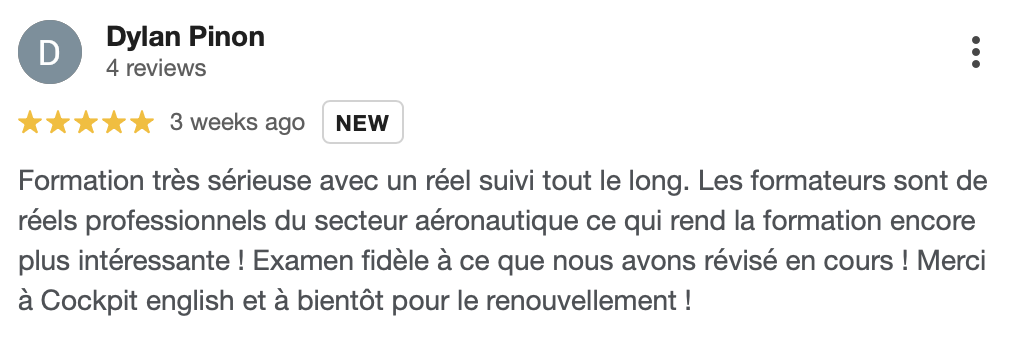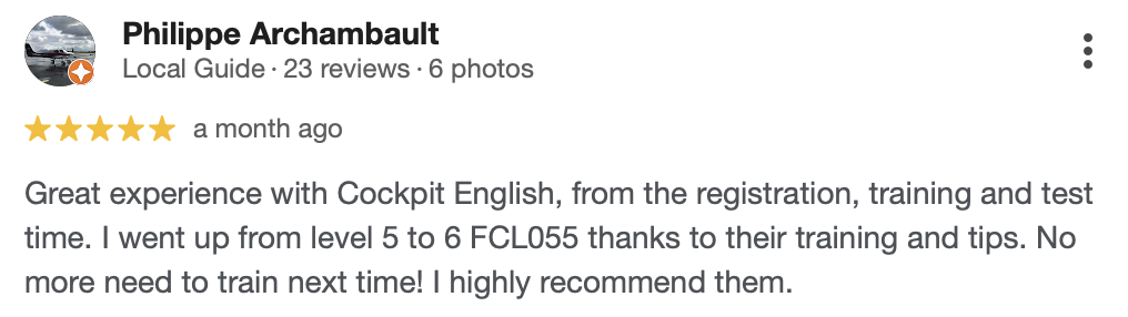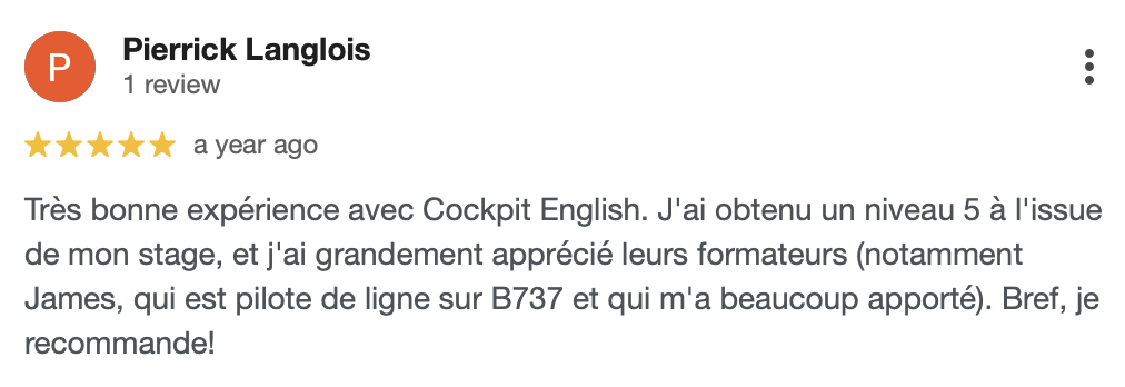 Pour mettre toutes les chances de votre côté, il est conseillé de se former avec des spécialistes de l’anglais aéronautique. MATPILOTE a établi un partenariat avec Cockpit English, société spécialisée en anglais aéro et créée par des pilotes et contrôleurs aériens. Ce partenariat propose des formations et supports de qualité, conçus pour préparer efficacement l’examen et atteindre le niveau requis, tout en bénéficiant de l’expérience de professionnels de l’aéronautique.